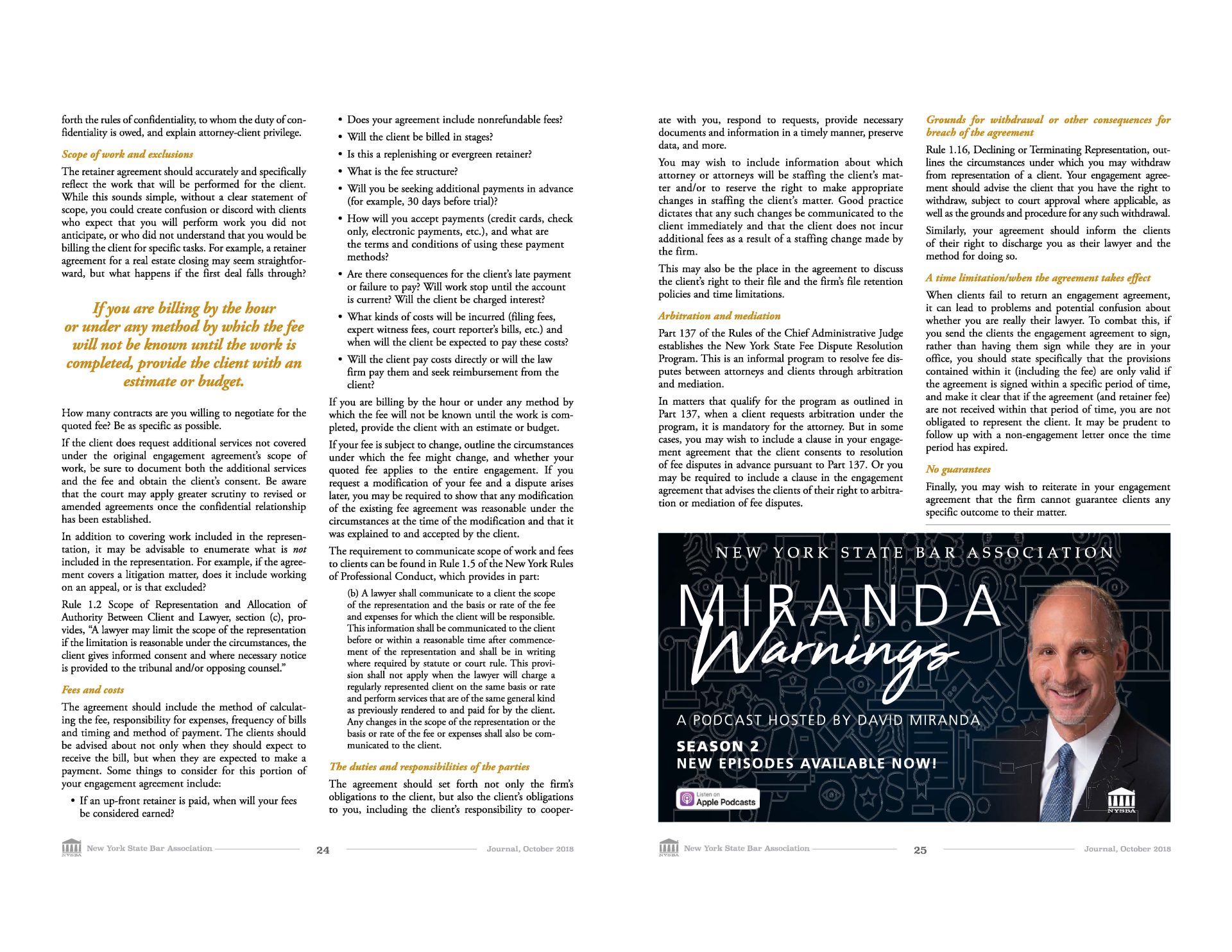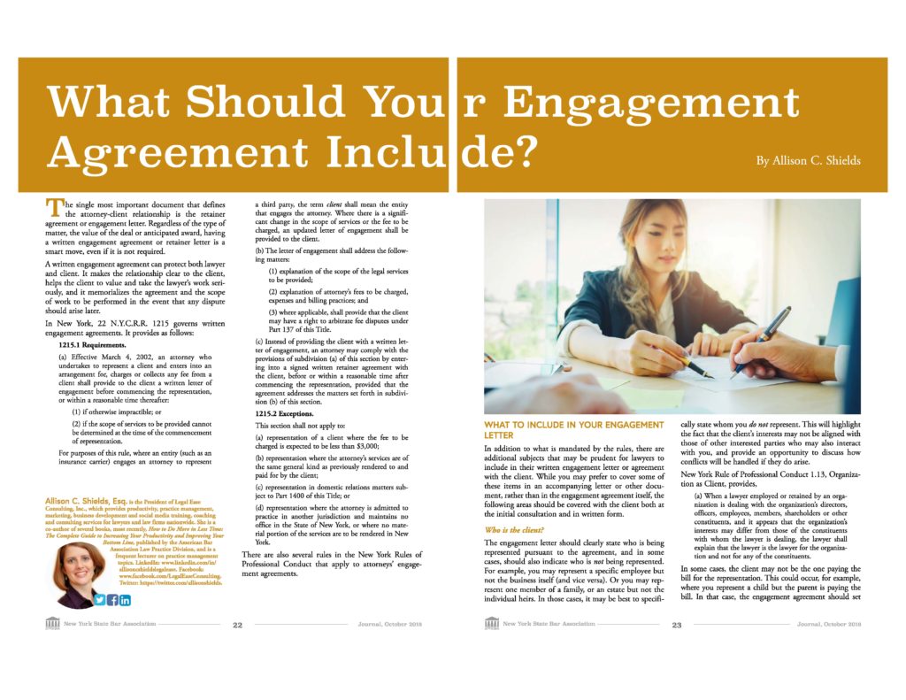 What Should Your Engagement Agreement Include – NYS Bar Journal October 18